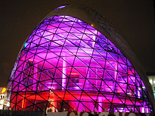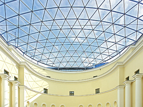 „Glasluster“ Beleuchtungsanlage und Lichthof mit Scheiben bis 450 x 225 cm von innen in bis zu 14 m Höhe montiert